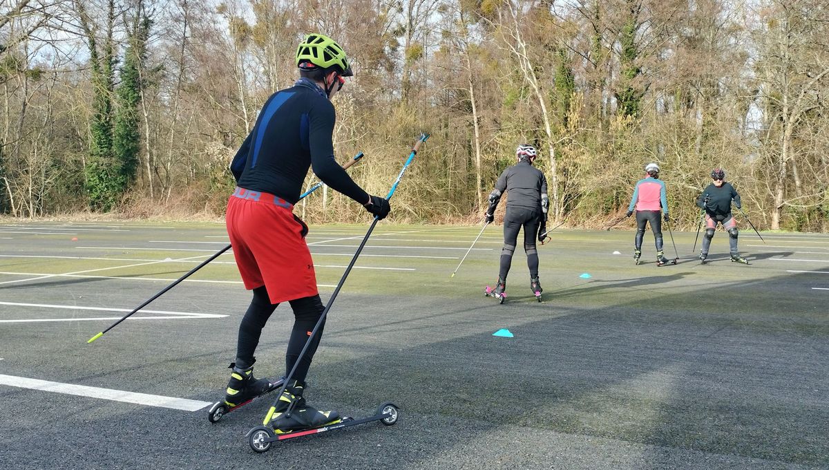 Bâtons, lunettes, chaussures de ski de fond, l’équipement est le même à un détail près : les lames ne glissent pas sur la neige, elles ont des roues devant et derrière. « Ah c’est peut-être un petit peu moins plaisant parce que quand on est entre les arbres enneigés c’est quand même bien plus sympathique, » concède la néo-biathlète Mélanie. « Mais bon, faute de mieux à Beauvais on a le goudron et un parking c’est déjà pas mal. » Comme sa camarade, Jean-Philippe se réjouit : « Ça nous permet de pouvoir faire du biathlon, parce que s’il fallait se payer les sports d’hiver pour faire ça, ce serait compliqué. »