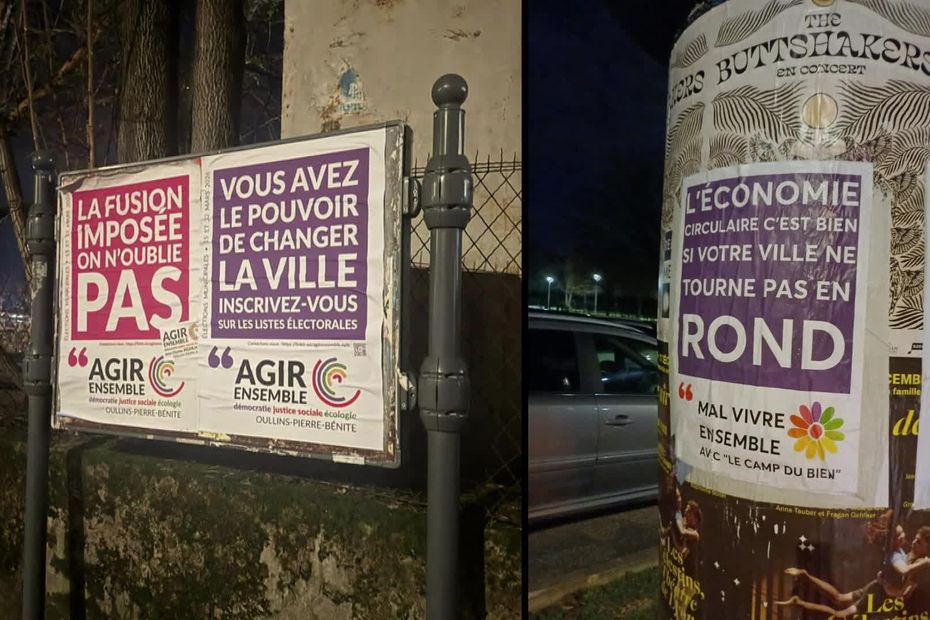 Le climat est tendu à Oullins-Pierre-Bénite. Des affiches parodiques, telles que « Vive l’argent public, merci pour vos impôts« , ont été placardées. Kohlhaas dénonce des pratiques illégales imputées aux soutiens du maire sortant, Jérôme Moroge.