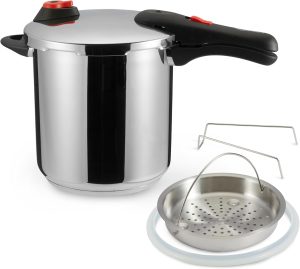 - Deux niveaux de pression pour s’adapter à vos besoins : cuisson douce ou rapide.