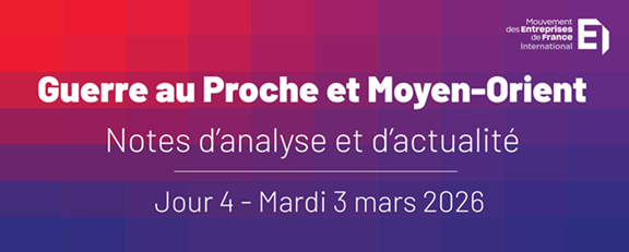 - Le fait : MEDEF International publie des notes d’analyse sur la situation au Proche et Moyen-Orient.