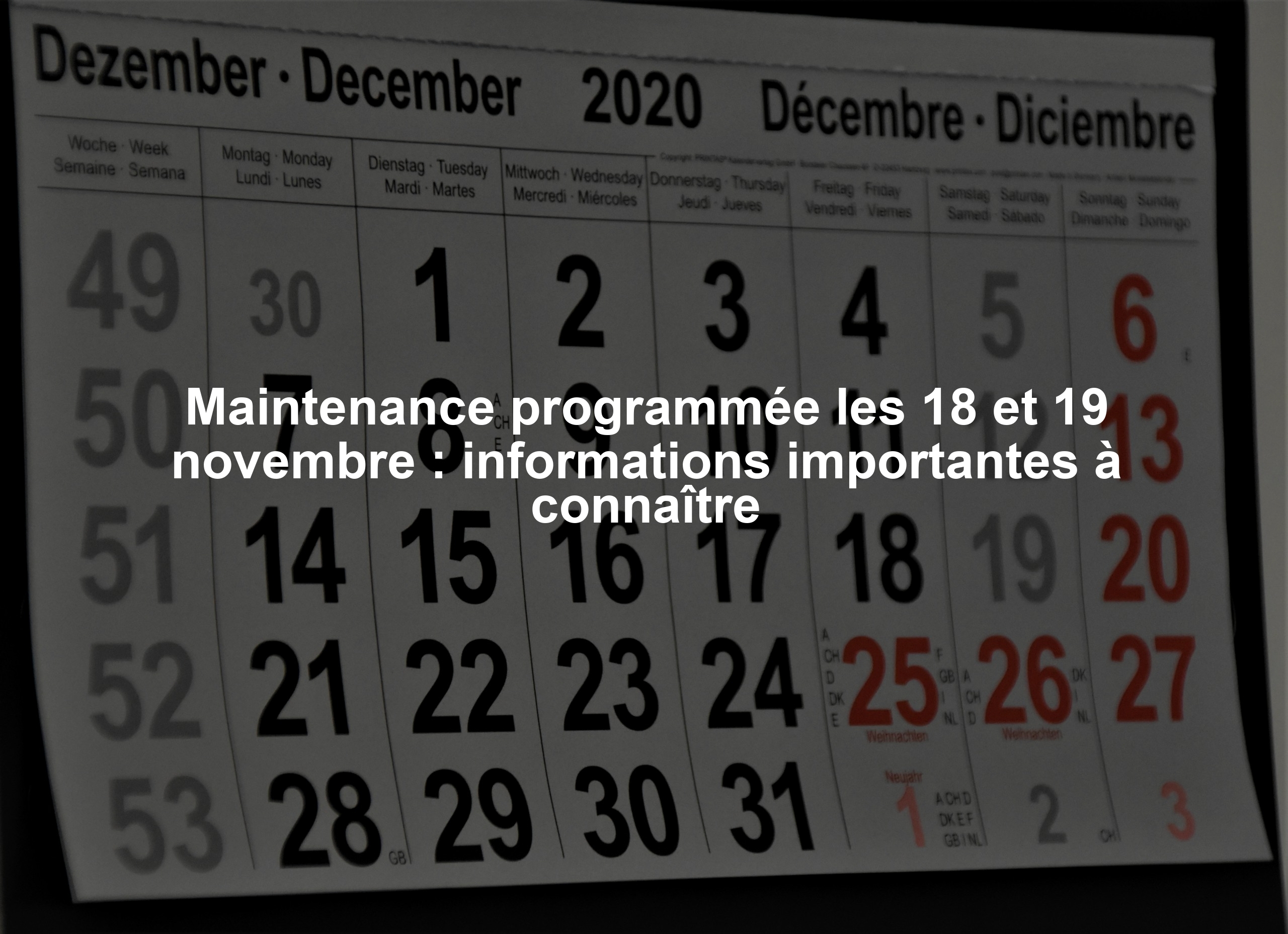 Maintenance programmée les 18 et 19 novembre : informations importantes à connaître