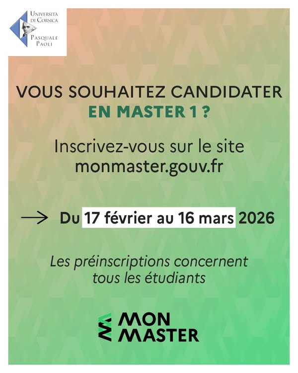 « Les étudiants doivent être attentifs aux délais pour ne pas rater leur chance d’intégrer un Master » — Università di Corsica Pasquale Paoli, 2026-03-13.