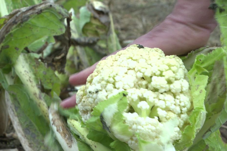 Dans son champ, les légumes n’ont pas tenu, noyés par des pluies abondantes et ininterrompues, sans véritable période de gel depuis novembre. Les feuilles des choux-fleurs n’ont pas suffisamment poussé pour couvrir les fleurs. Exposés à la pluie, ils se sont dégradés : « Ça, ça ne peut pas être mis à la vente…«