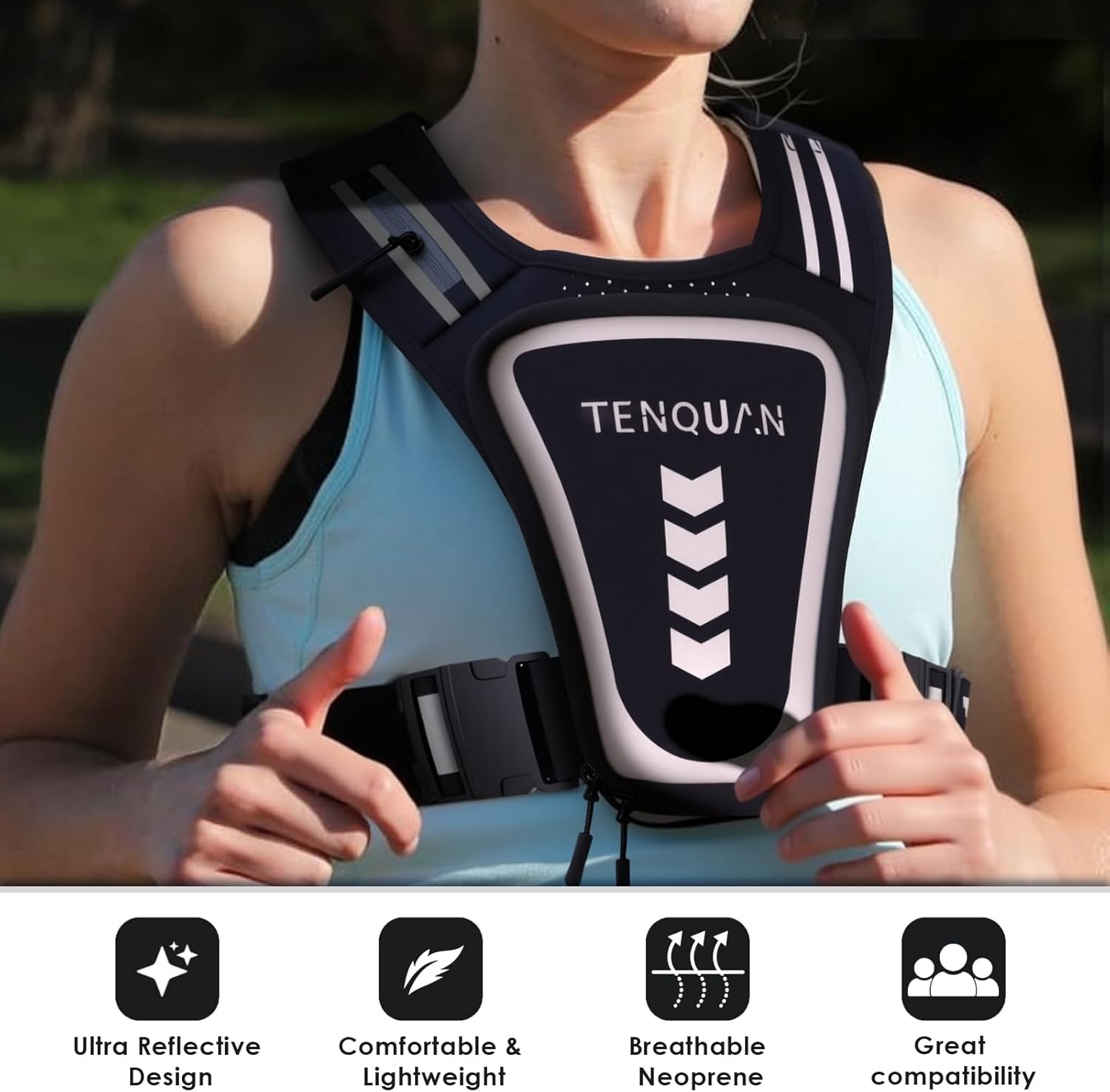 Le gilet de course TENQUAN convient parfaitement aux coureurs, randonneurs et cyclistes, offrant un confort et une praticité inégalés. Grâce à sa conception légère et réfléchissante, il est idéal pour les activités en extérieur, particulièrement dans des conditions de faible luminosité.