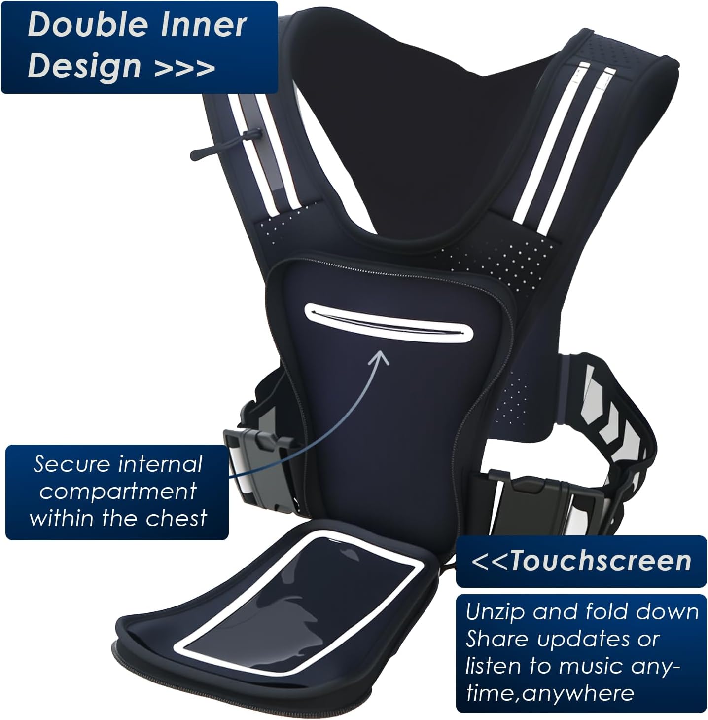 – Design multi-poches pour ranger cartes, clés, et gels énergétiques.