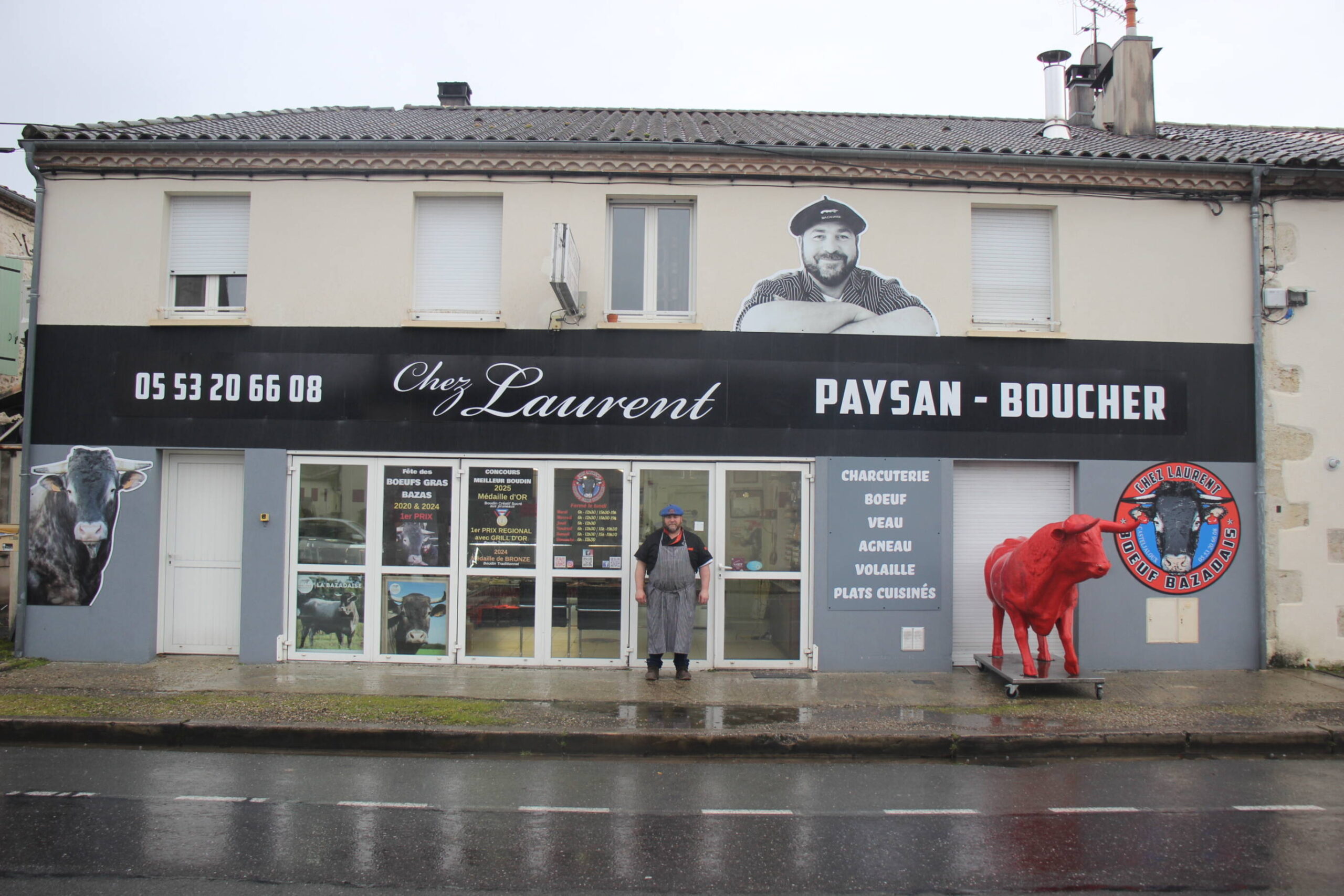 Laurent Groussin, boucher paysan, élève des vaches bazadaises et propose des produits de sa ferme. Il sera présent sur la place Gambetta pour vendre sa viande et ses spécialités. Le concours de bœufs gras à Bazas a été annulé pour des raisons sanitaires, mais la fête à Casteljaloux se maintient.