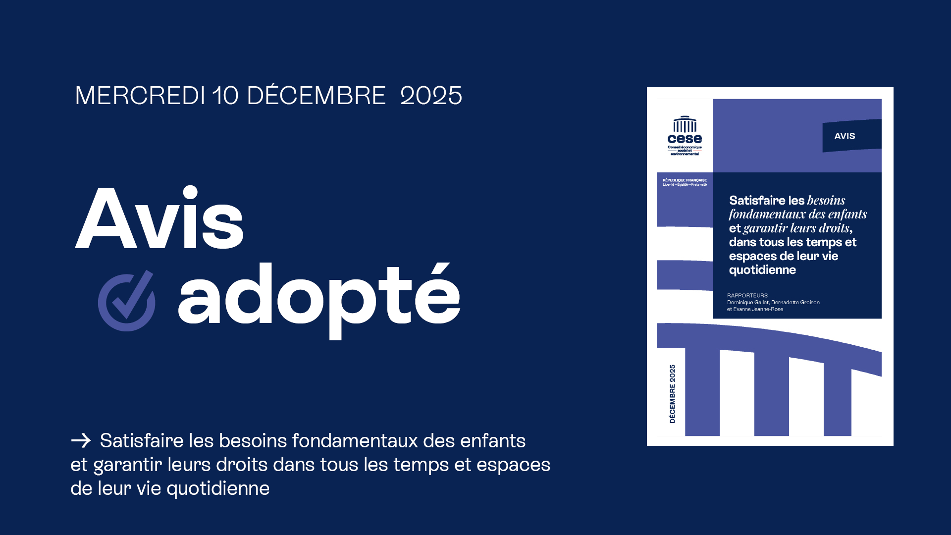 - Le fait : Le CESE a adopté un avis sur les droits des enfants le 10 décembre 2025.