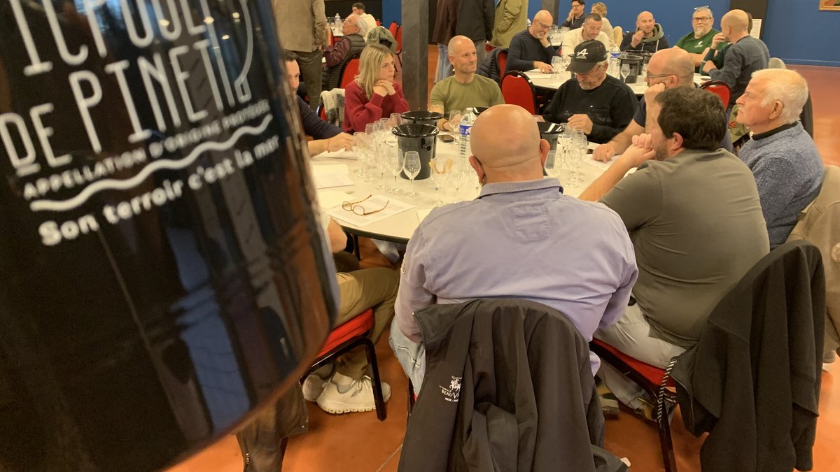 Dans la salle réservée aux professionnels, le président du syndicat, Laurent Thieule et la directrice Céleste Renault avaient en effet convié les vignerons de l’appellation à venir noter les dernières cuvées mises en vente sur le marché. À apprendre à en parler, surtout. « Le but premier, c’est d’abord de fédérer nos adhérents, qui ne se voient pas souvent », explique Céleste Renault. Une précaution utile, quand on sait que 350 adhérents, particuliers et coopérateurs, composent une appellation qui génère entre 60 et 80 millions d’euros de chiffre d’affaires annuels. Pour mener les débats techniques autour des vins, un sommelier et œnologue, Alexandre Freguin. Un technicien au profil assez atypique, puisqu’il a œuvré une quinzaine d’années dans un restaurant étoilé en Angleterre, avant d’être sacré meilleur sommelier du Royaume-Uni. Terre où les blancs du Picpoul de Pinet sont très appréciés, ce qui n’est pas un détail.