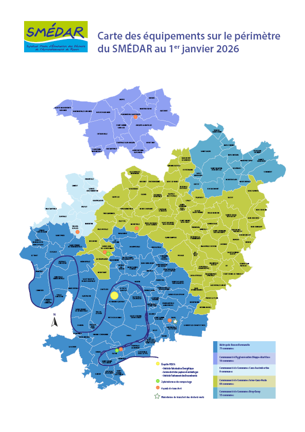 Depuis le 1er janvier 2026, le périmètre du Smédar évolue avec l’intégration de 15 communes de l’agglomération Dieppe-Maritime. Cette extension témoigne de la confiance accordée au Smédar et de la volonté partagée des collectivités de mutualiser leurs moyens au service de l’environnement et des habitants du territoire.