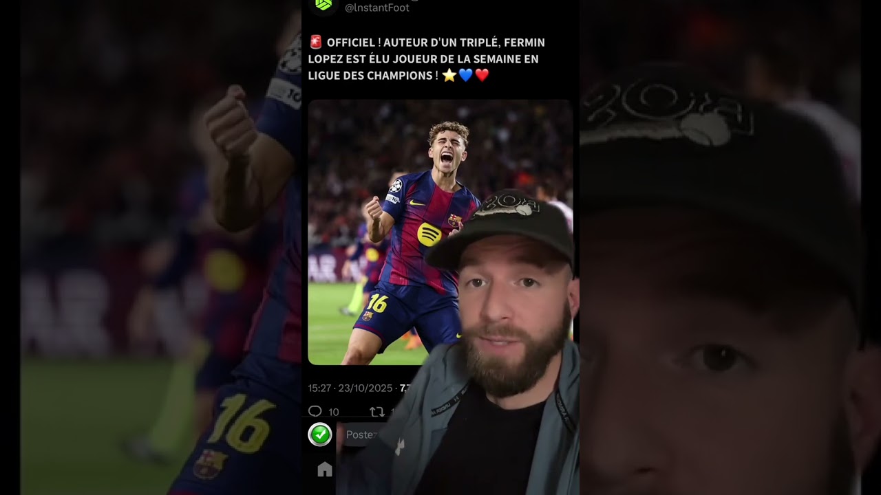 - Fermin Lopez, après un triplé contre l’Olympiacos, est le meilleur joueur de la semaine en Ligue des Champions.