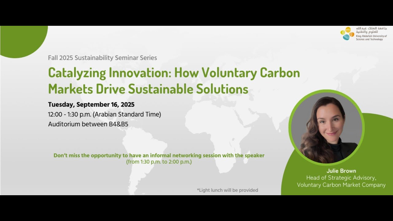 Introduction : Le 16 septembre 2025, au KAUST, Julie Brown a captivé l’audience lors d’un séminaire sur le marché du carbone volontaire, un levier essentiel pour la durabilité. Cette session, animée par Alaa Almushaikeh, a mis en lumière comment ces marchés peuvent propulser des solutions innovantes face à la crise climatique. L’enjeu est de taille : réduire les émissions de carbone tout en soutenant les communautés vulnérables.