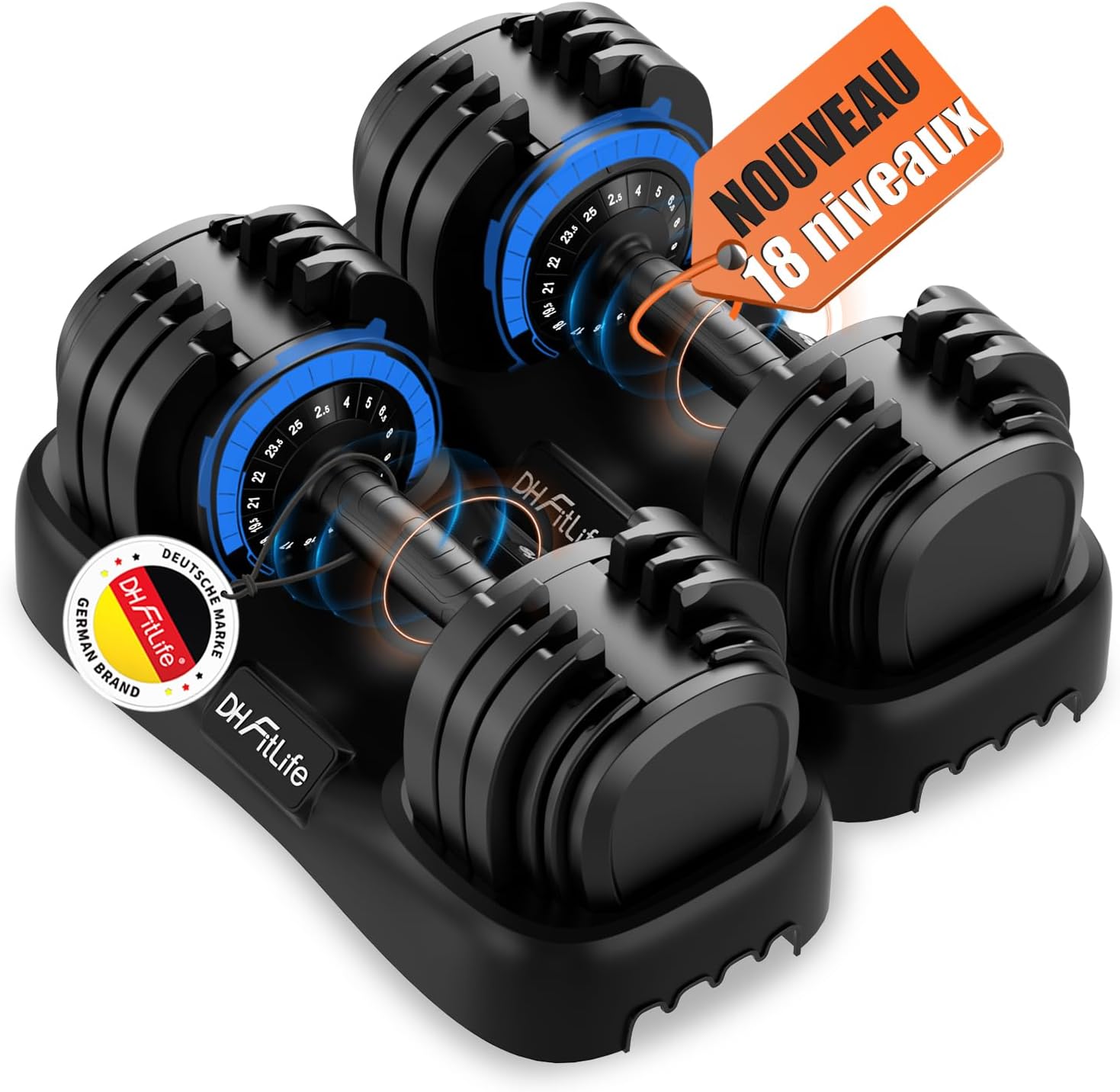 DH FitLife 2026 – Nouveau set d’haltères réglables 2,5 à 25 kg, 18 niveaux, avec disques, pour hommes et femmes – Le détail qui change tout au quotidien