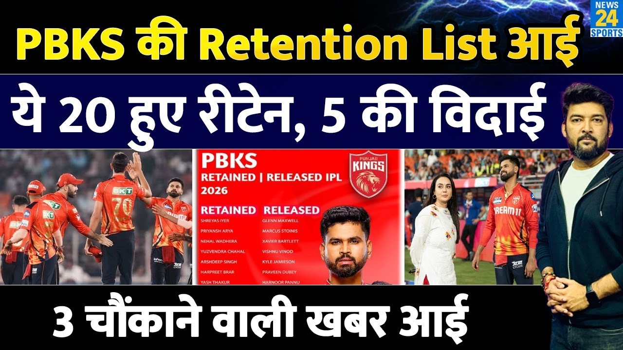 Tags : punjab kings retained players 2026,punjab kings retention list,ipl 2026,ipl news,ipl 2026 retention,ipl retained players list 2026,punjab kings,punjab kings retained players,pbks retained players 2026,pbks released players 2026,pbks,ipl 2026 released players list,punjab kings 2026,ipl 2026 kkr retention list,pbks captain 2026,pbks ipl 2026,pbks team 2026,pbks squad for ipl 2026,shreyas iyer,arshdeep singh,yashasvi jaiswal,josh inglis,news24 sports