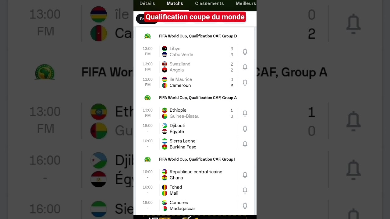 Hashtags : #Zone #Afrique #qualification #coupe #monde #calendrier #résultats #9ème #journée