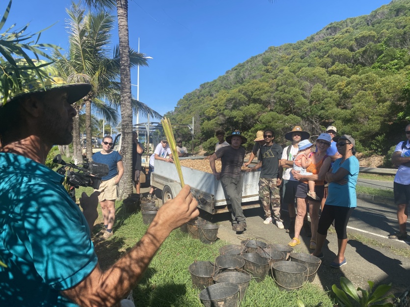 François Tron, coordinateur du projet Kiwa PEBACC + a briefé les participants en leur présentant les différentes espèces destinées à être plantées. Photo Julien Mazzoni