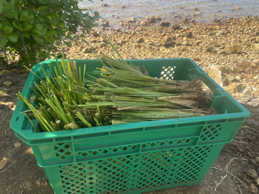 La plantation vient compléter ces dispositifs. Parmi les espèces retenues, plusieurs plantes indigènes du littoral calédonien, comme le palétuvier blanc ou le « pied-de-poule », mais aussi le vétiver, choisi pour son système racinaire. « Ses racines peuvent descendre sur plusieurs mètres, explique François Tron. Elles permettent de stabiliser rapidement le sol. »