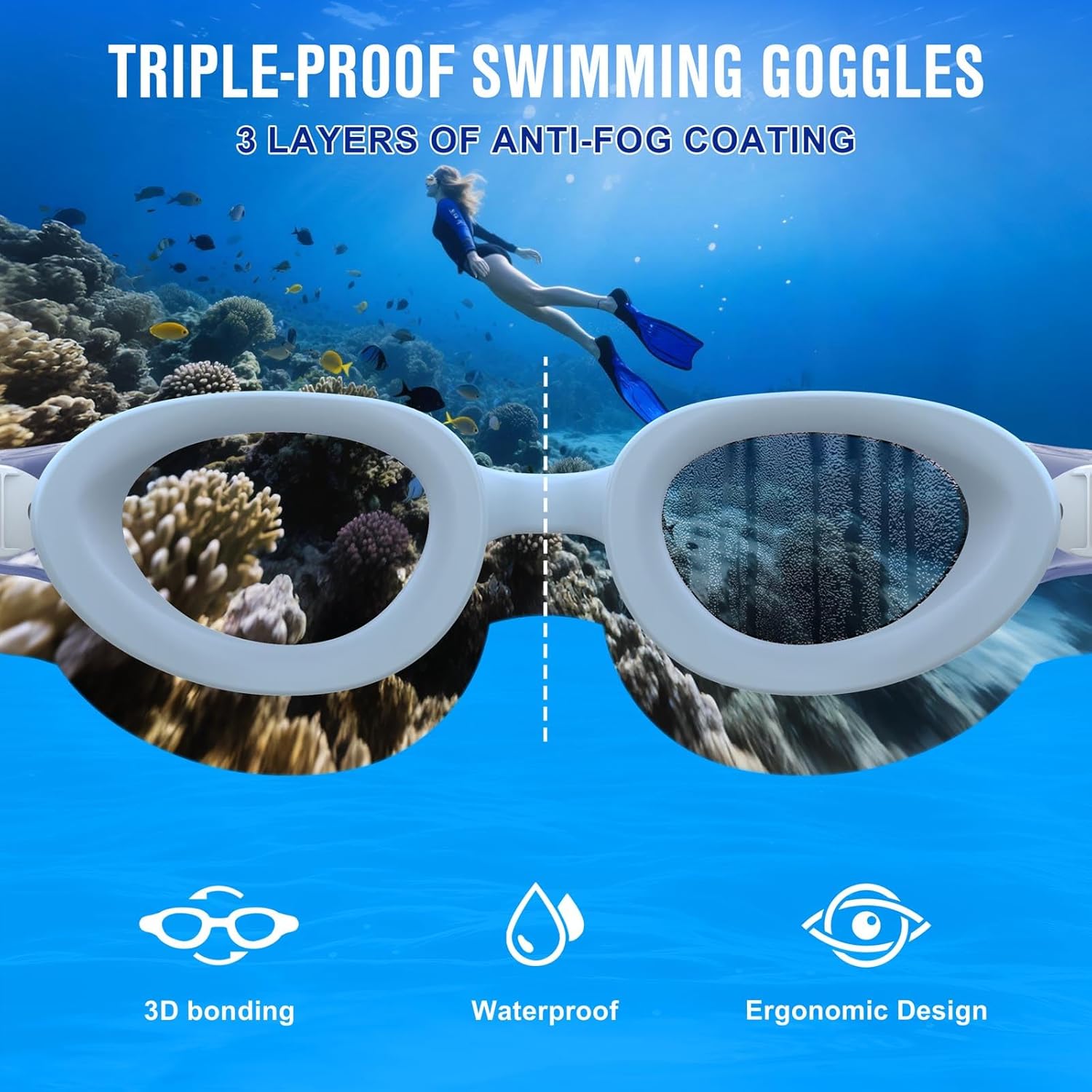 – Protection anti-buée pour une expérience de nage sans interruption.