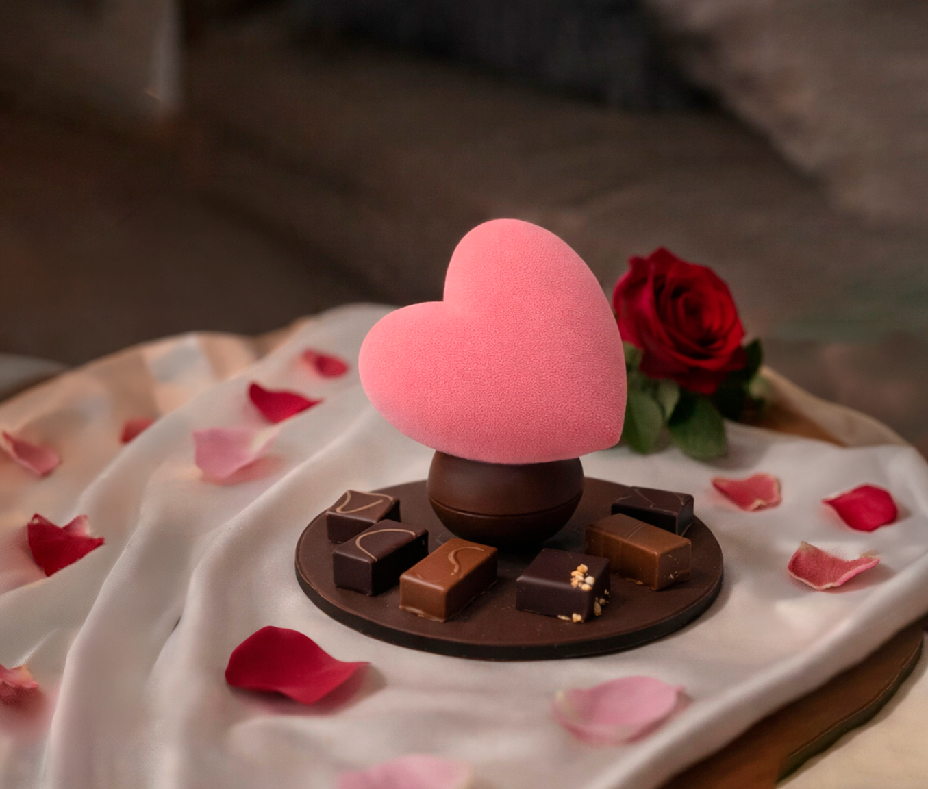 - Des cœurs en chocolat ultra-gourmands, travaillés avec les plus beaux crus et des associations signatures (fruits rouges acidulés, caramel beurre salé, notes florales subtiles…)