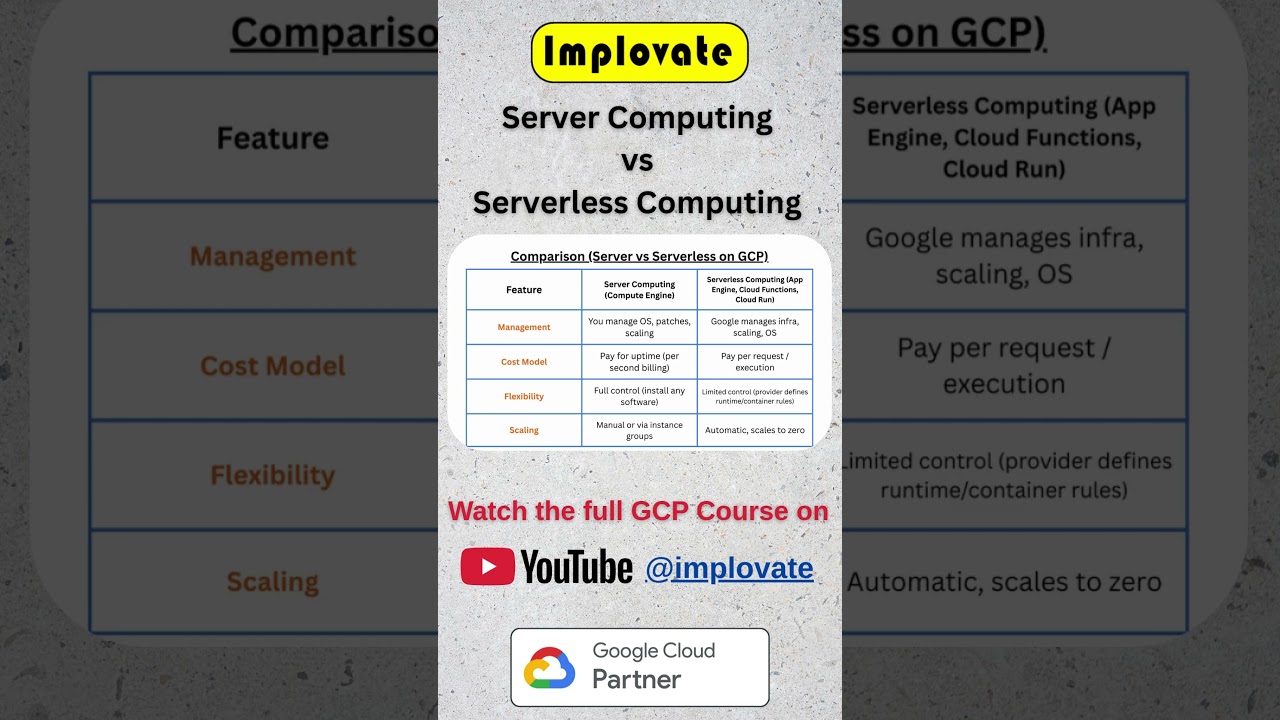 Tags : server vs serverless,serverless computing,google cloud serverless,gcp serverless explained,cloud computing basics,gcp tutorial for beginners,learn gcp,serverless vs servers,google cloud functions,implovate gcp masterclass