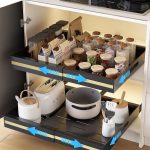 • UMDONX Lot de 2 Tiroir Coulissant Cuisine Adhésif Rangement Placard Noir – Tiroir Télescopique Extensible (largeur 30.5-51.5cm)