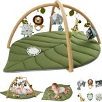 Blissful Diary Tapis d’éveil Bébé avec Arche Amovible, Forme des Feuilles Tapis Éveil Bébé 6 Jouets – Développement Sensoriel et Moteur Progressif, Enfant, Fille et Garçon, Vert Forêt