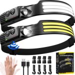 • Lampe Frontale LED Ultra Puissante,3000 Lumens Super Lumineux 3*LED 230° Torche Frontale Rechargeable USB Capteur De Mouvement,Étanche IPX5 Poids 0.14lb léger,Pour Pêche,Camping,Cyclisme,Running