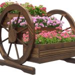 • Outsunny Jardinière sur Pieds carré Potager 3 étages Style Rustique Chic avec 2 Roues Charrette Bois Sapin, Trous de Drainage, dim. 62L x 61l x 57H cm Marron