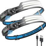 Smiling Shark Lampe Frontale, 2 Pièces 230°Angle Large 3*LED Bandes Lumineuses Blanches Headlight Rechargeable avec Capteur de Motion Étanche pour Activités Outdoor, Lampe-Frontale-LED-Camping