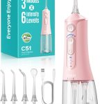 • COSLUS Jet Dentaire Hydropulseur Irrigateur Oral: 3 Modes & 18Niveaux, Pic Dentaire Eau pour Orthodontie, Appareil Dentaire, Gencives Sensibles, Compact pour Voyage, Usage Familial,Rose,C51