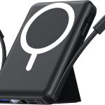 • Azmuth Batterie Externe Magnétique Compatible avec MagSafe, 10000mAh sans Fil PowerBank Charge Rapide PD 20W avec 2 Câble et Support et Affichage LED, Compatible iPhone 17/16/15/14/13/Pro/Pro Max/Plus