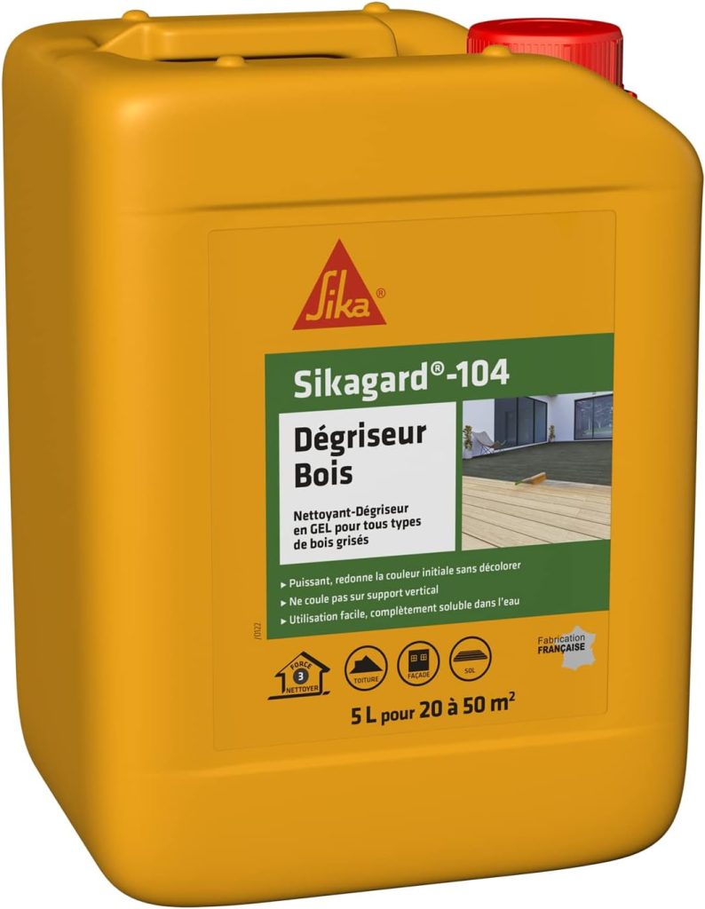 • SIKA – Nettoyant dégriseur bois – Sikagard 104 – Tous types de bois – Toiture, façade, sol, mobilier de jardin, clôture, bardage – Ravive les couleurs du bois – Prêt à l’emploi – Pour 20 à 50m2-5L