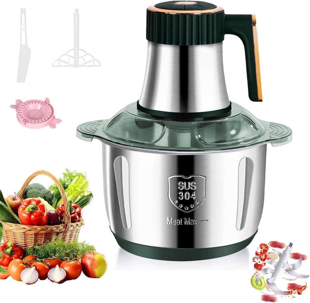 • Hachoir Électrique 5L,Hachoir Cuisine avec Récipients en Acier Inoxydable,Robot de Cuisine Avec 6 Lames Amovibles,5 Vitesses Hachoirs Multifonction pour Viande Légumes et Fruits (Vert)