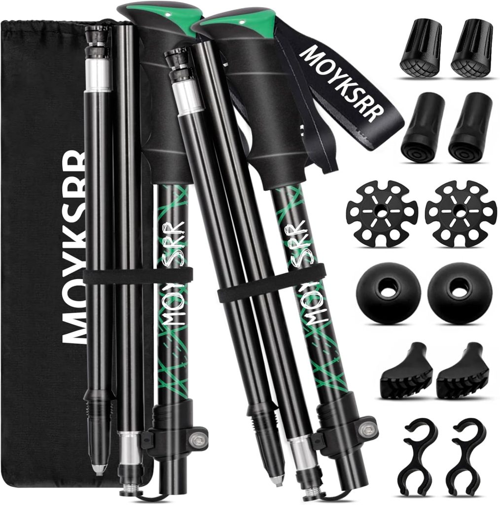 Bâtons de Randonnée, 2 PCS Baton de Marche Pliable, Antidérapant Ultraléger Bâton de Marche Télescopique Retractable avec 5 Paires de Tampons en Caoutchouc pour Le Conditionnement du Trekking