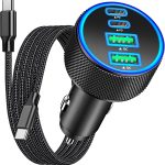 Lamicall 3 en 1 Chargeur Allume Cigare Voiture USB C – [75 CM Câble Type-C Rétractable] 50W Charge Rapide Chargeur Voiture avec USB-C/USB-A, 180° Pliable Prise 12V/24V pour iPhone, Android