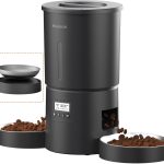 • Distributeur Automatique de Nourriture pour Chat avec Double Bol pour 2 Chats, Chatons et Petits Chiens (Noir, 4.2L+Acier Inoxydable 2 Bols)