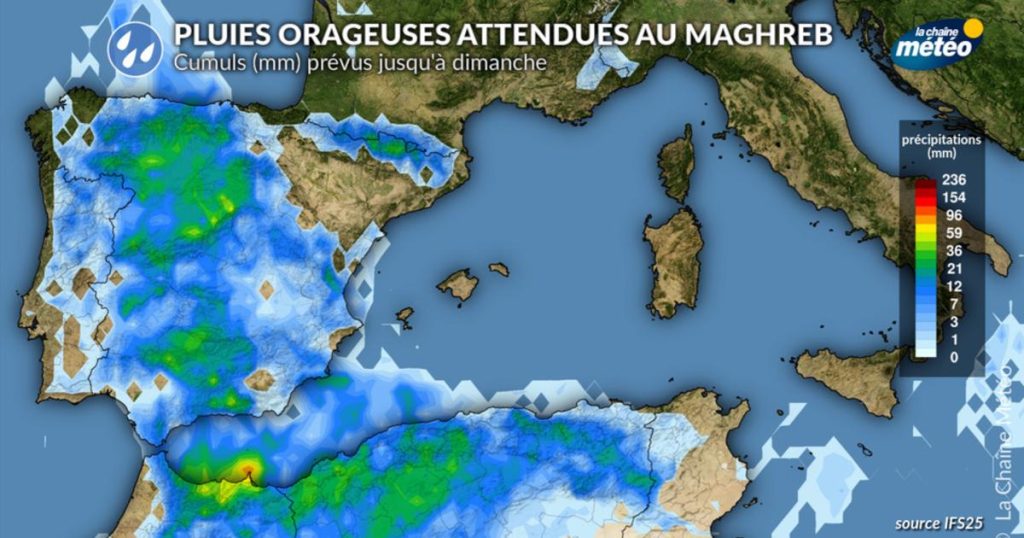 Forts orages au Maghreb : pluies intenses et rafales attendues ce week-end.