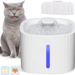 • Fontaine à Eau pour Chat Chien 3L, Distributeur Eau pour Chat Silencieux avec LED Fenêtre de Niveau d’eau, 3 Filtre à Charbon Actif