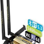 • Carte WiFi 5400Mbps PCIe WiFi 6E WAVLINK Nouvelle Carte réseau Adaptateur sans Fil tri-Bande AX210 avec Bluetooth 5.3, MU-MIMO WPA3 OFDMA Support de Profil Bas, dissipateur Thermique pour PC Windows