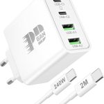 • Mac Book Chargeur, 100W 4-Port GaN Adaptateur USB C avec 240W 2M Câble pour MacBook Pro 16/15/14/13 Pouces, MacBook Air (2018~2024) M1/M2/M3/M4, iphone 16/15, iPad, Chargeur Rapide USBC USB-A