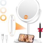 • Auxmir Miroir de Maquillage Éclairé 30X/1X avec 3 Couleurs, LED à Intensité Variable, Mirroir Cosmétique avec 2 Commande Tactile, Rotation 360°, Miroir Grossisant Lumineux pour Salle de Bain, Chambre