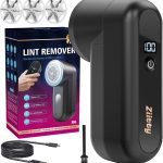 • Rasoir Anti Bouloche Électrique Écran LCD, Rechargeable Câble Type-C, 3 Niveaux de Puissance Réglables, Tête à 6 Lames Fraise à Peluches, Idéal Vêtements Canapés Couvertures Rideaux Noir