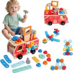 • Jouets Montessori pour Les Enfants de 2 3 4 5 Ans,Coffret d’Outils en Bois Jouet de Voiture,Développe la Motricité Fine et la Créativité,Idée Cadeau d’anniversaire