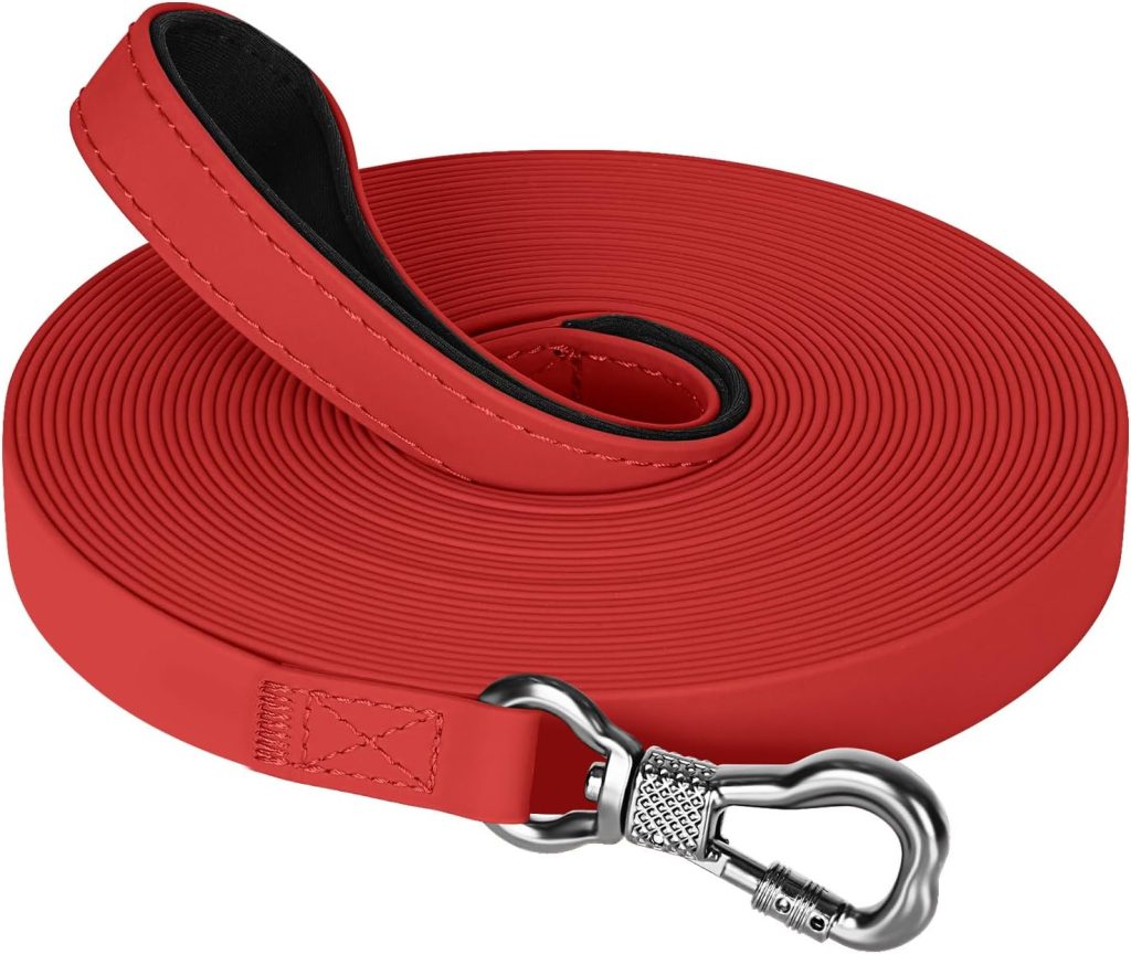 • X XBEN Longe pour Chien, 10M Laisse de Dressage étanches pour Chiens, Laisse pour Chien avec Poignée Confort et Mousqueton Verrouillable, Longe Robuste pour Petits, Moyens et Grands Chiens, Rouge