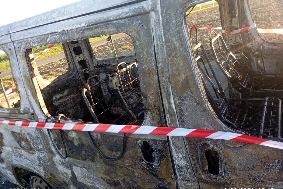 Le minibus a été volé puis incendié près d’une route