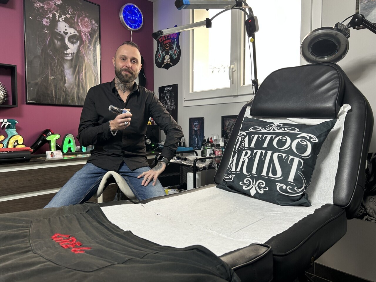 Grégory Menival a commencé sa carrière en tant qu’aérographe avant de se tourner vers le tatouage, encouragé par un ami tatoueur. Son nouveau salon, situé au 15 rue du stade, a été entièrement réaménagé pour accueillir son matériel et ses clients.
