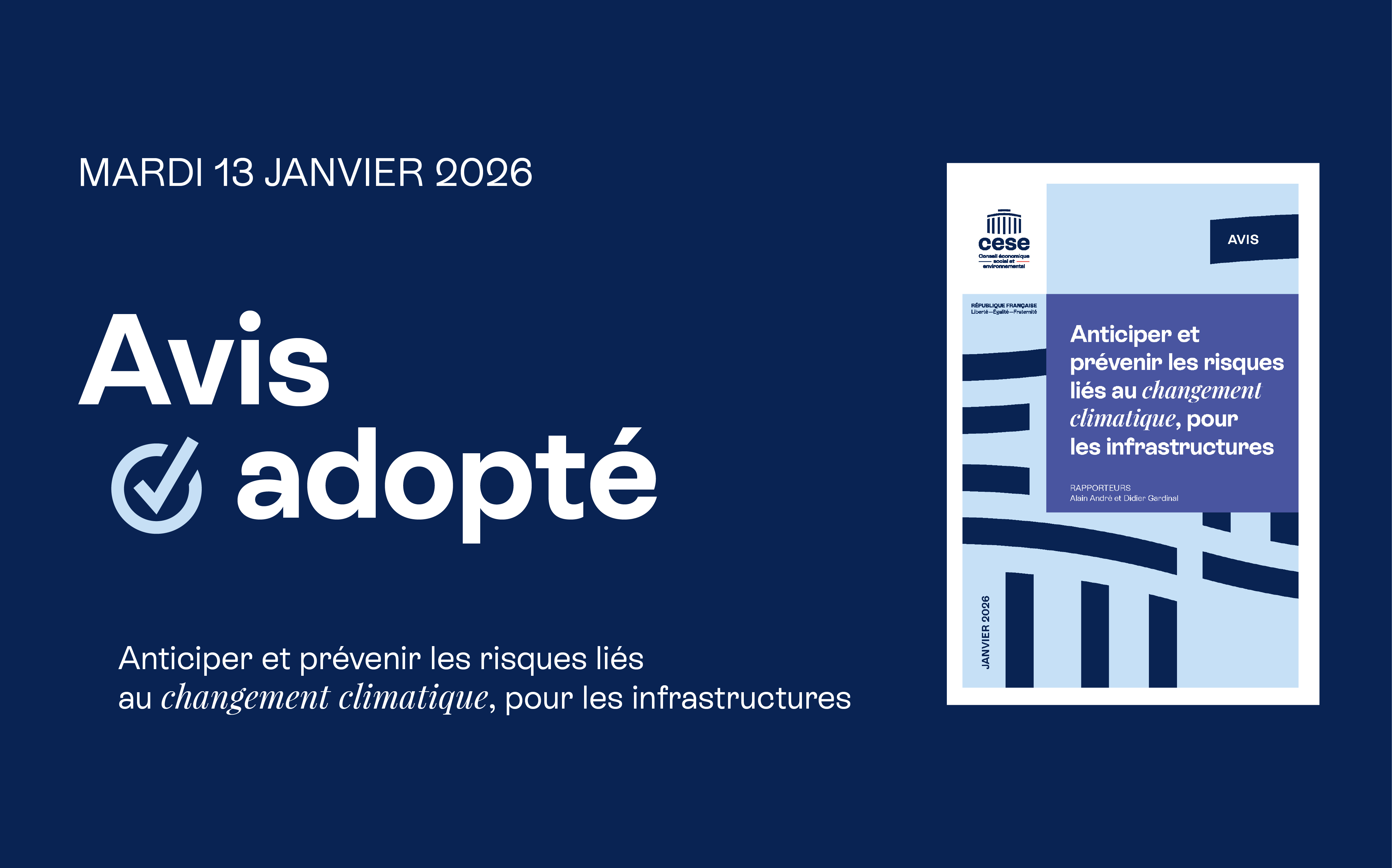 Mise à jour le 2026-01-13 01:00:00 : Le CESE a adopté un avis crucial sur l’adaptation des infrastructures face au changement climatique.