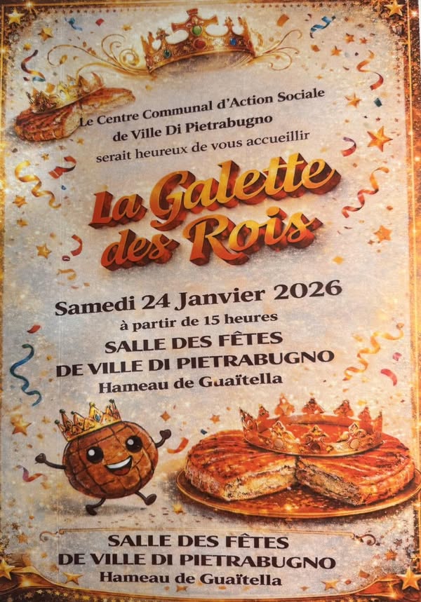 Le CCAS de Ville-di-Pietrabugno, en collaboration avec la cunfraterna Santa Croce, organise une après-midi festive le 24 janvier. Cet événement mettra à l’honneur la Galette des Rois et vise à rassembler les générations. Cela constitue une belle opportunité de partage et de convivialité pour les habitants. Pour plus d’informations, contactez la mairie.