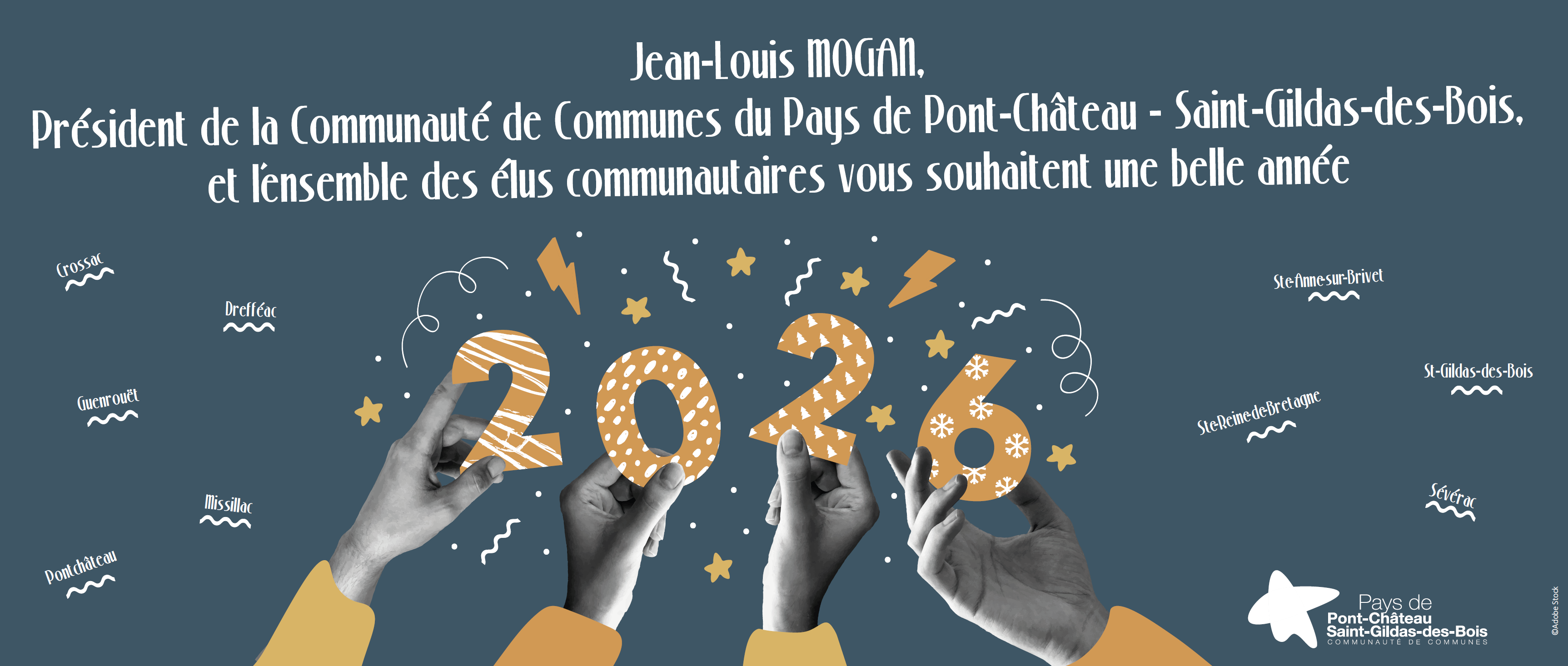 « L’ensemble des élus communautaires et les agents vous souhaitent une belle année 2026 ! » — Jean-Louis MOGAN, Président de la Communauté de Communes du Pays de Pontchâteau – Saint-Gildas-des-Bois.